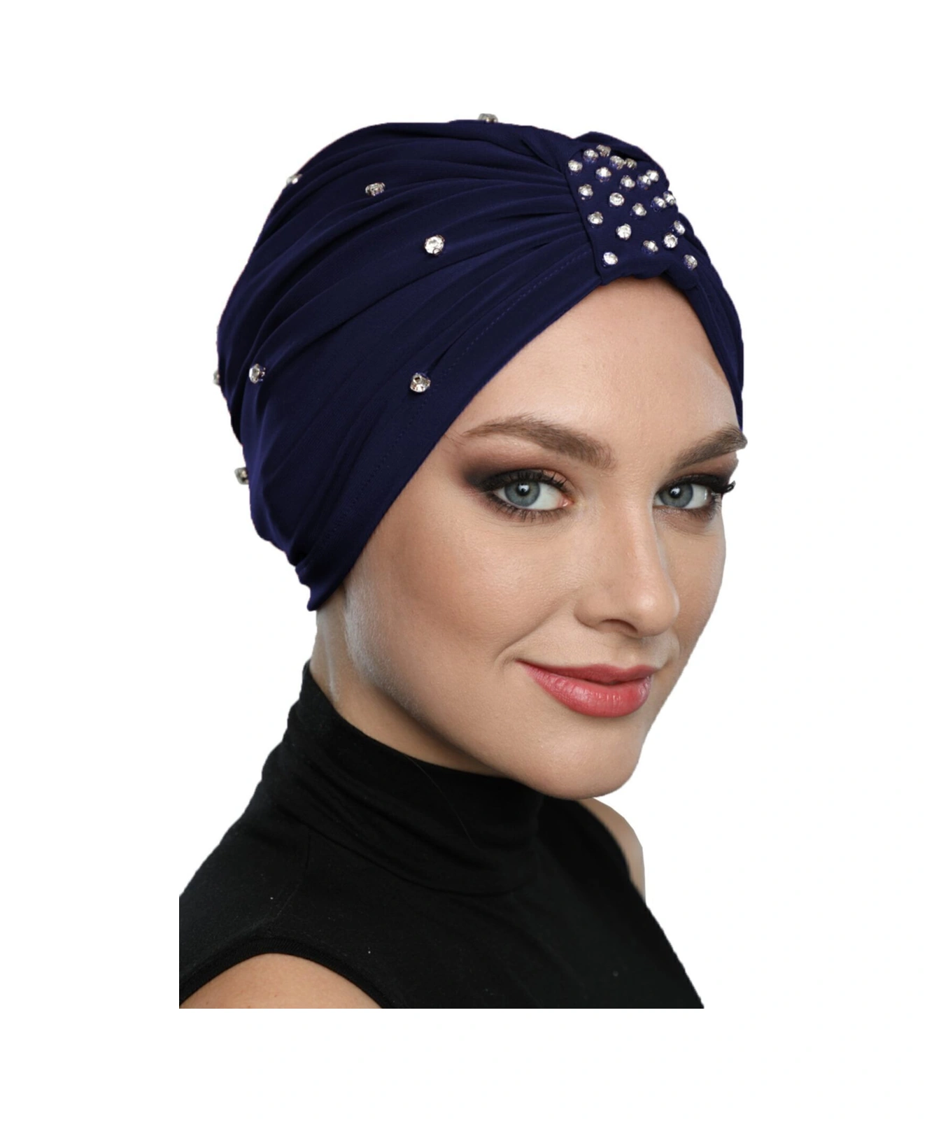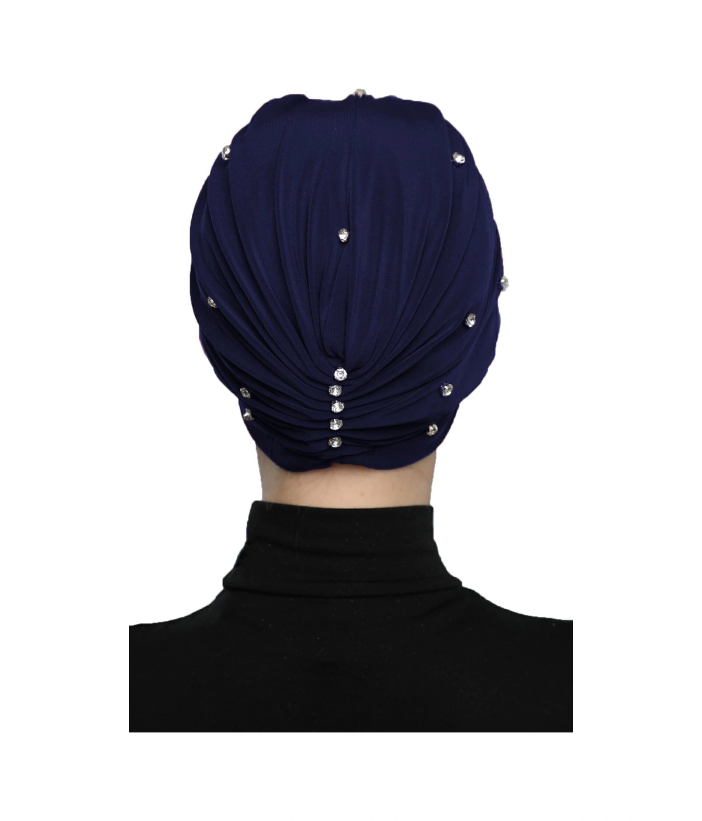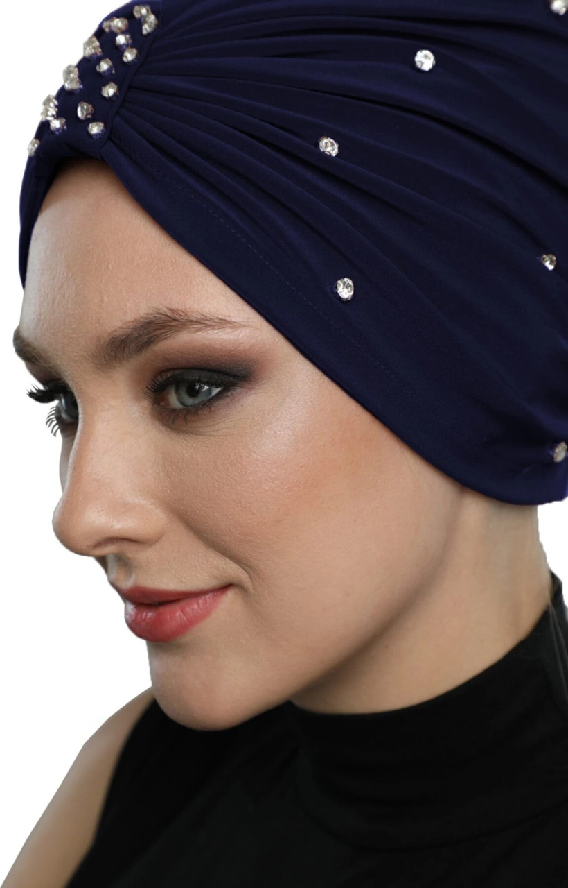 Zeni Taşlı Astarlı El İşi İşlemeli Lacivert Hazır Türban Tesettür Bonesi Lacivert