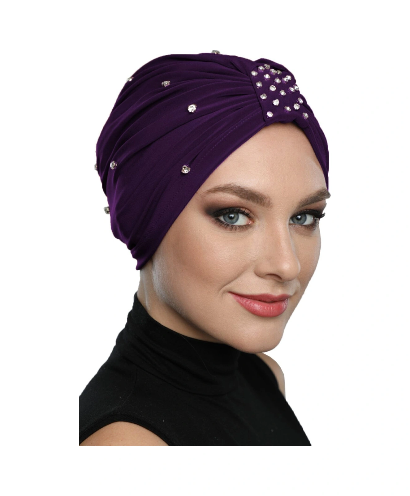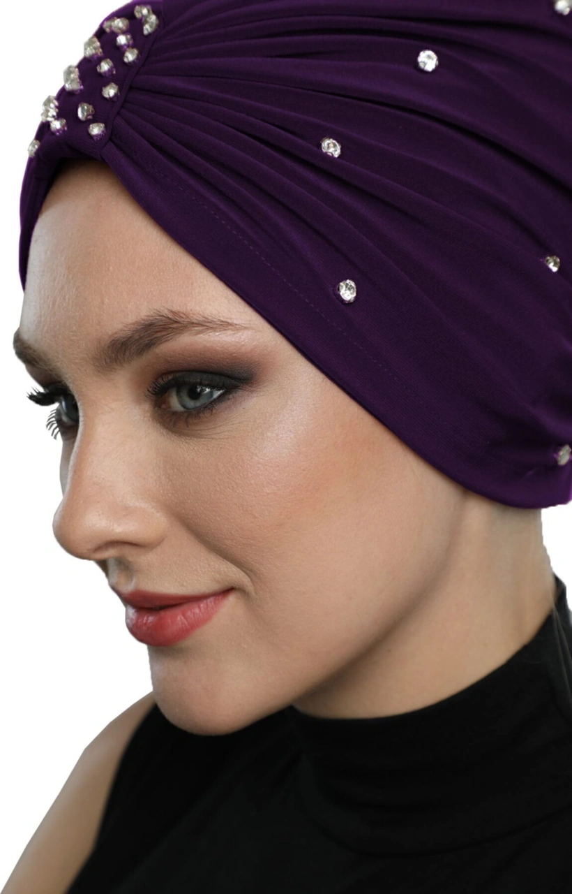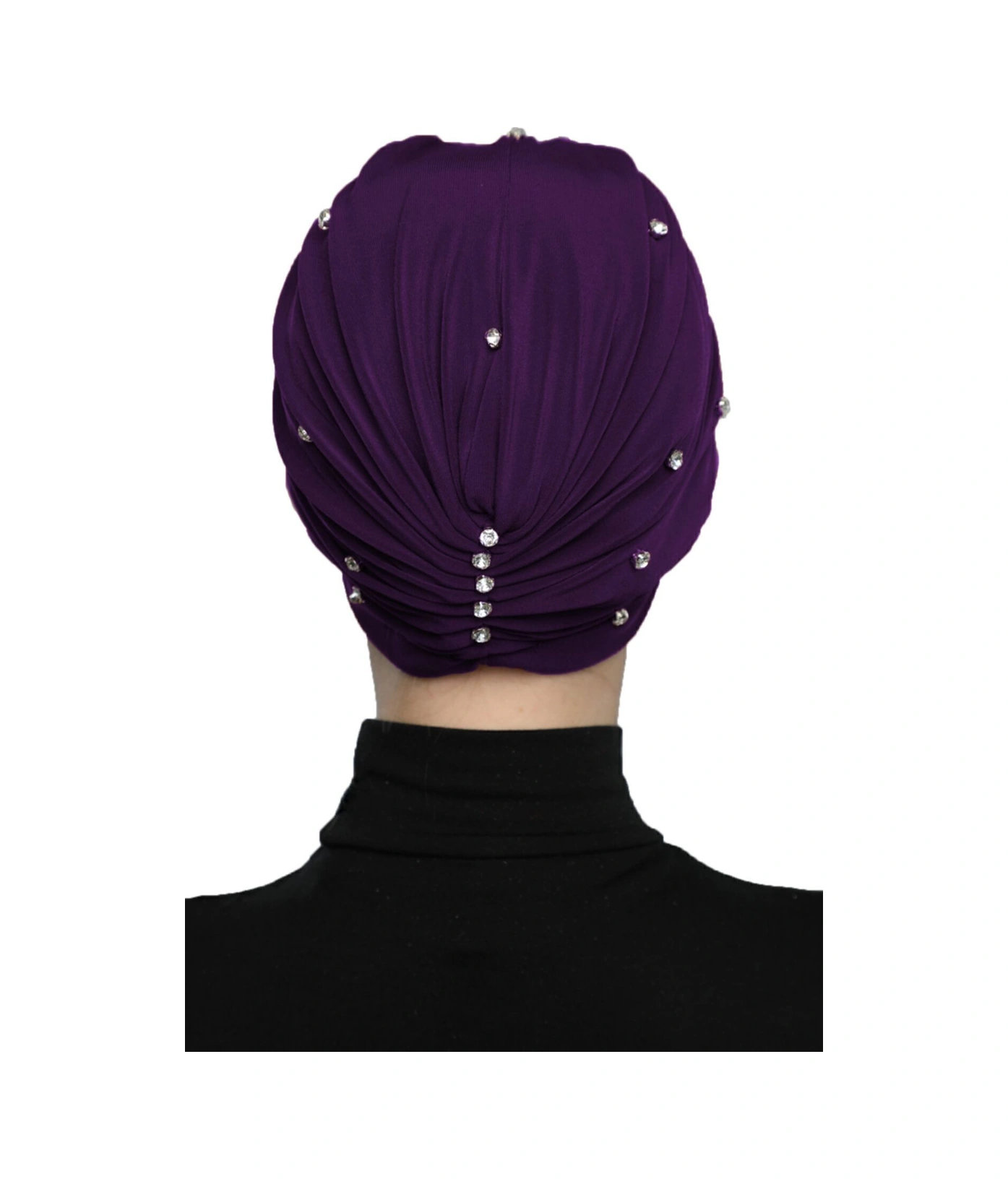 Zeni Taşlı Astarlı El İşi İşlemeli Mor Hazır Türban Tesettür Abiye Bone Mor