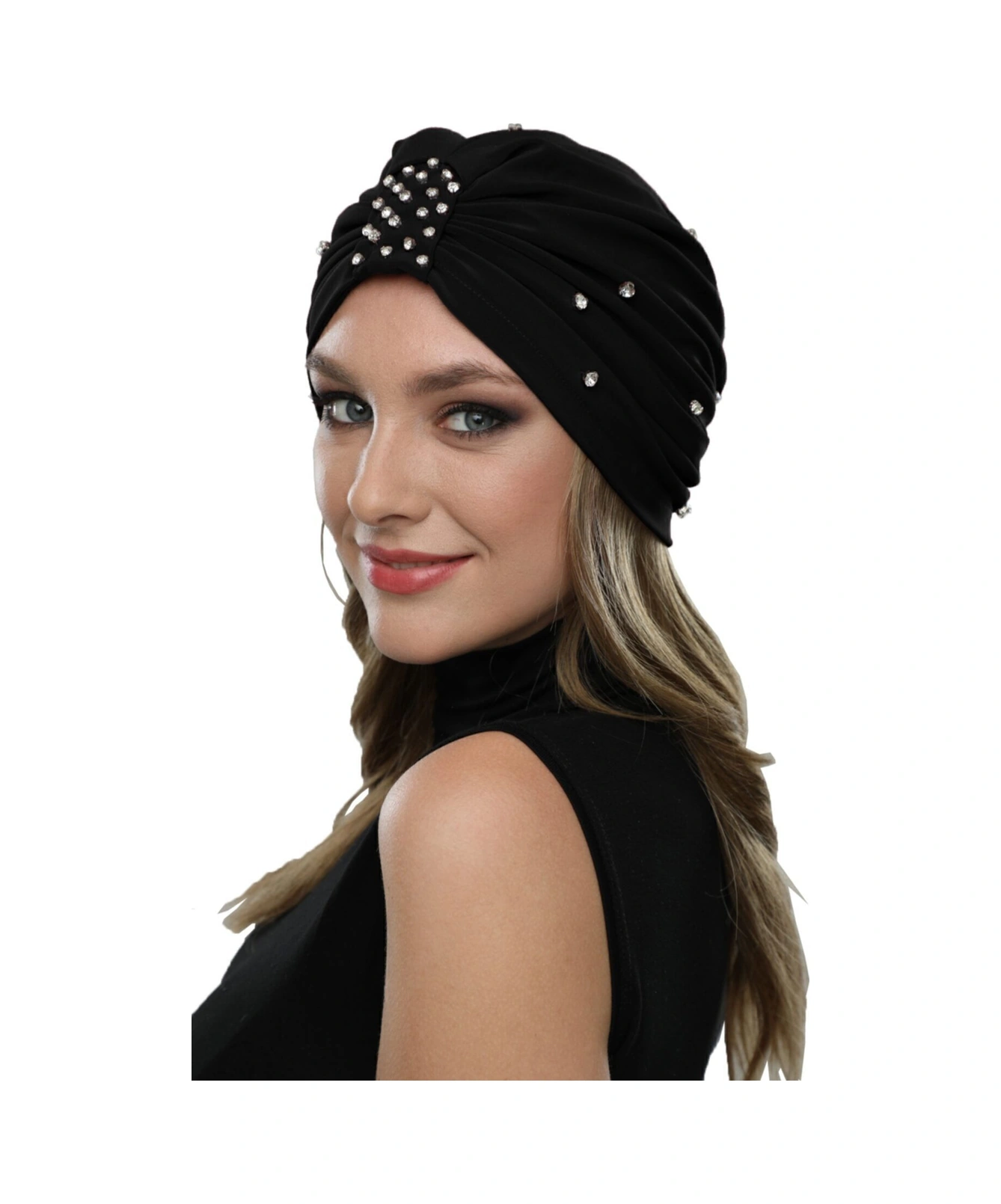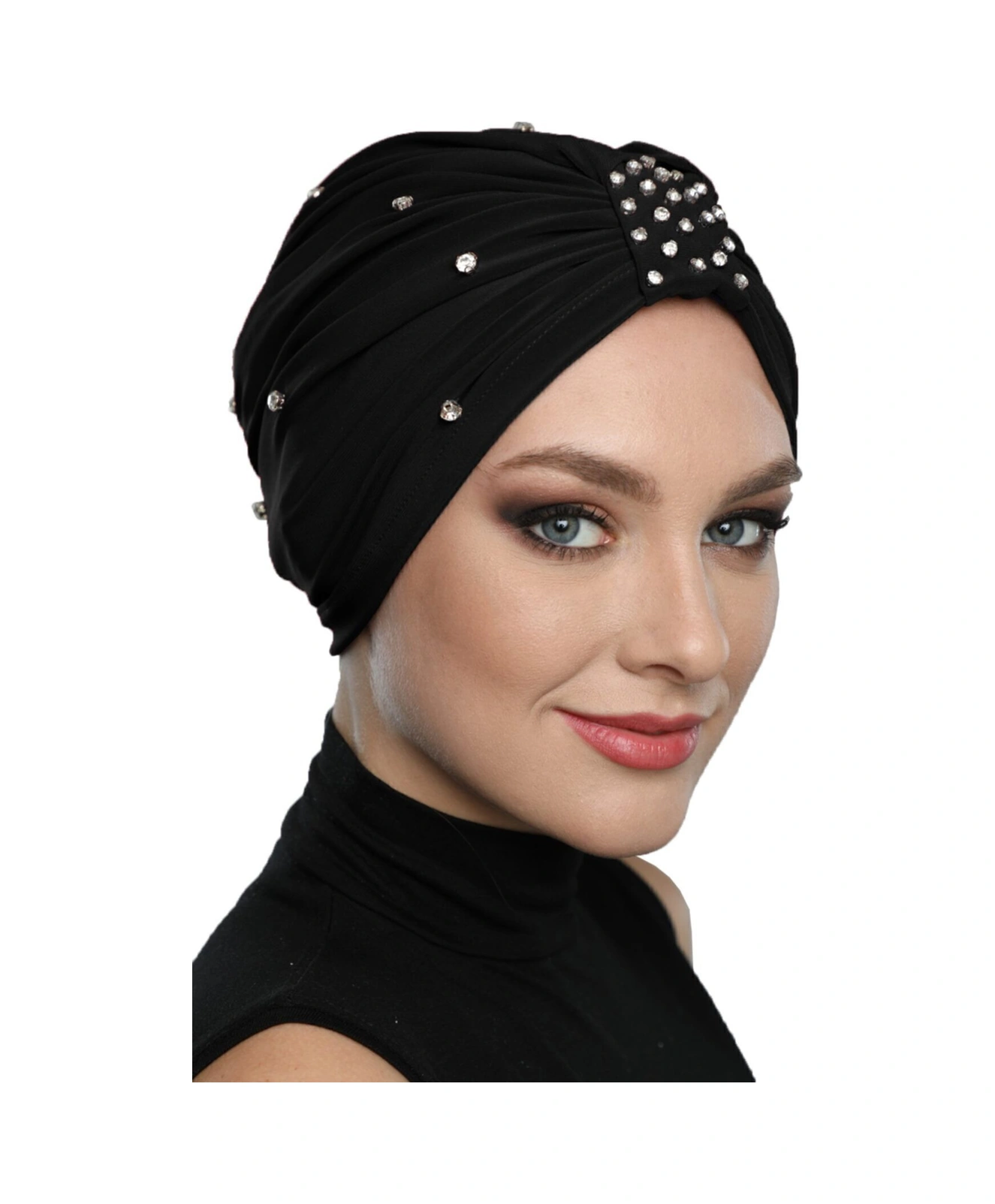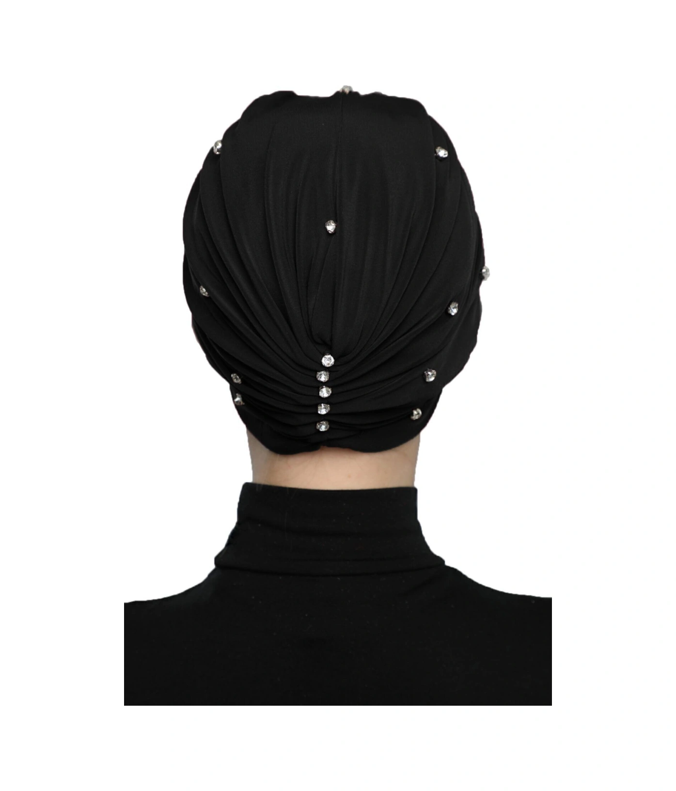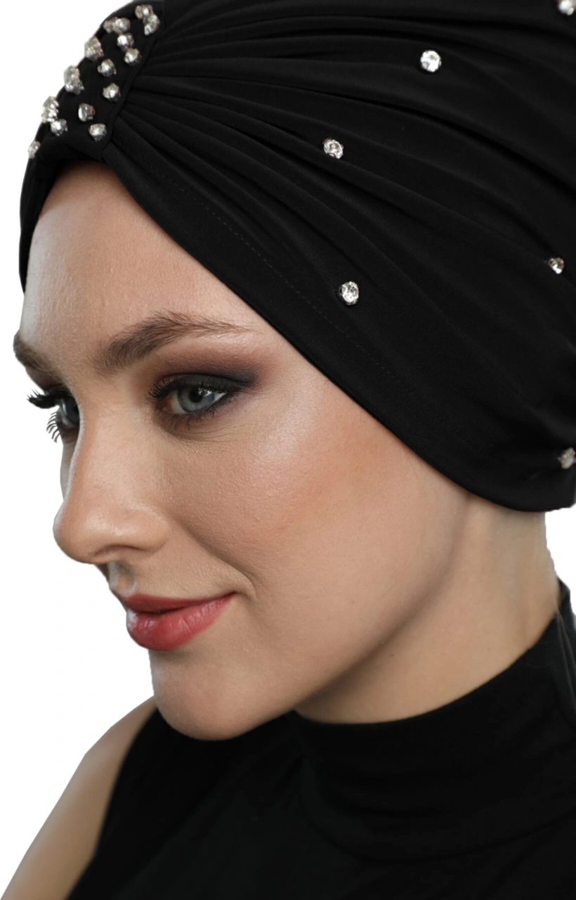 Zeni Taşlı Astarlı El Işi İşlemeli Siyah Hazır Türban Tesettür Abiye Bone Siyah