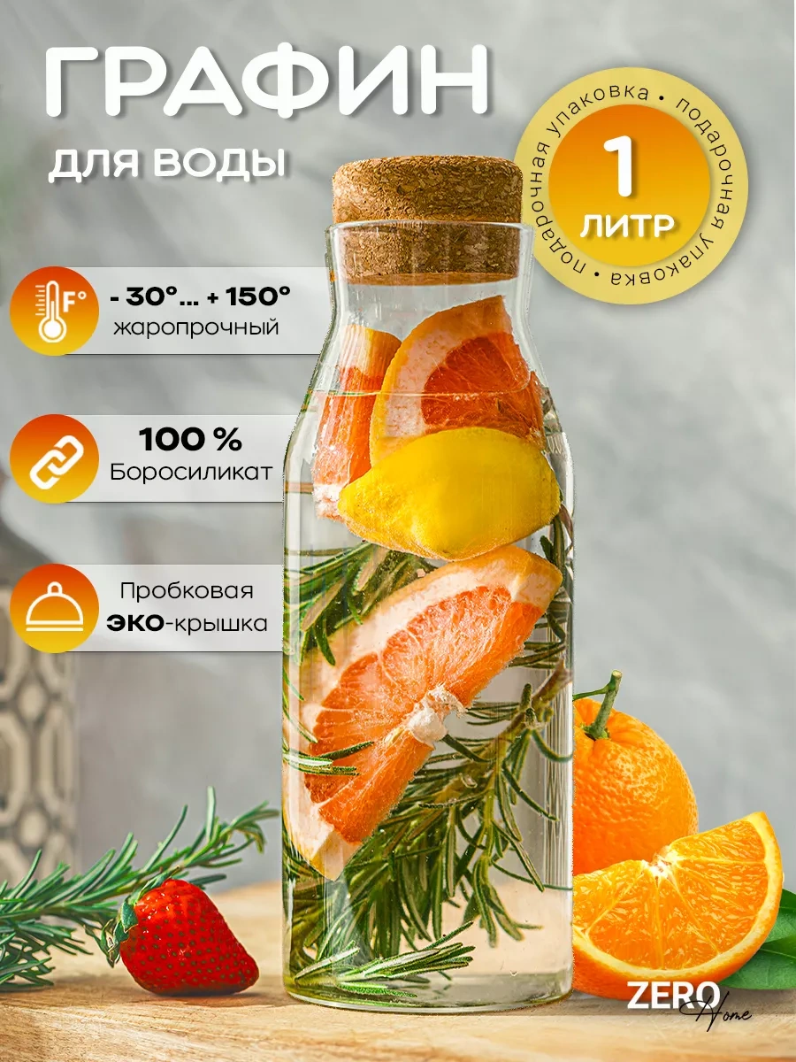 Zero Home Mantar Kapaklı Cam Su Sürahisi 1 Litre 156390675