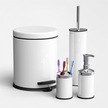 Zethome Beyaz Dörtlü Banyo Seti (çöp Kovası-fırça-sabunluk-diş Fı Beyaz