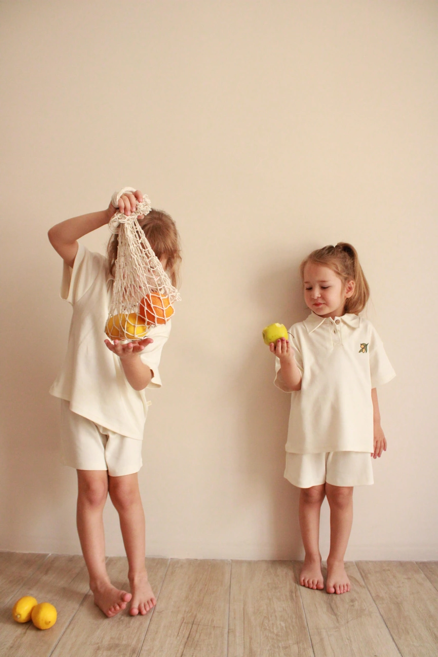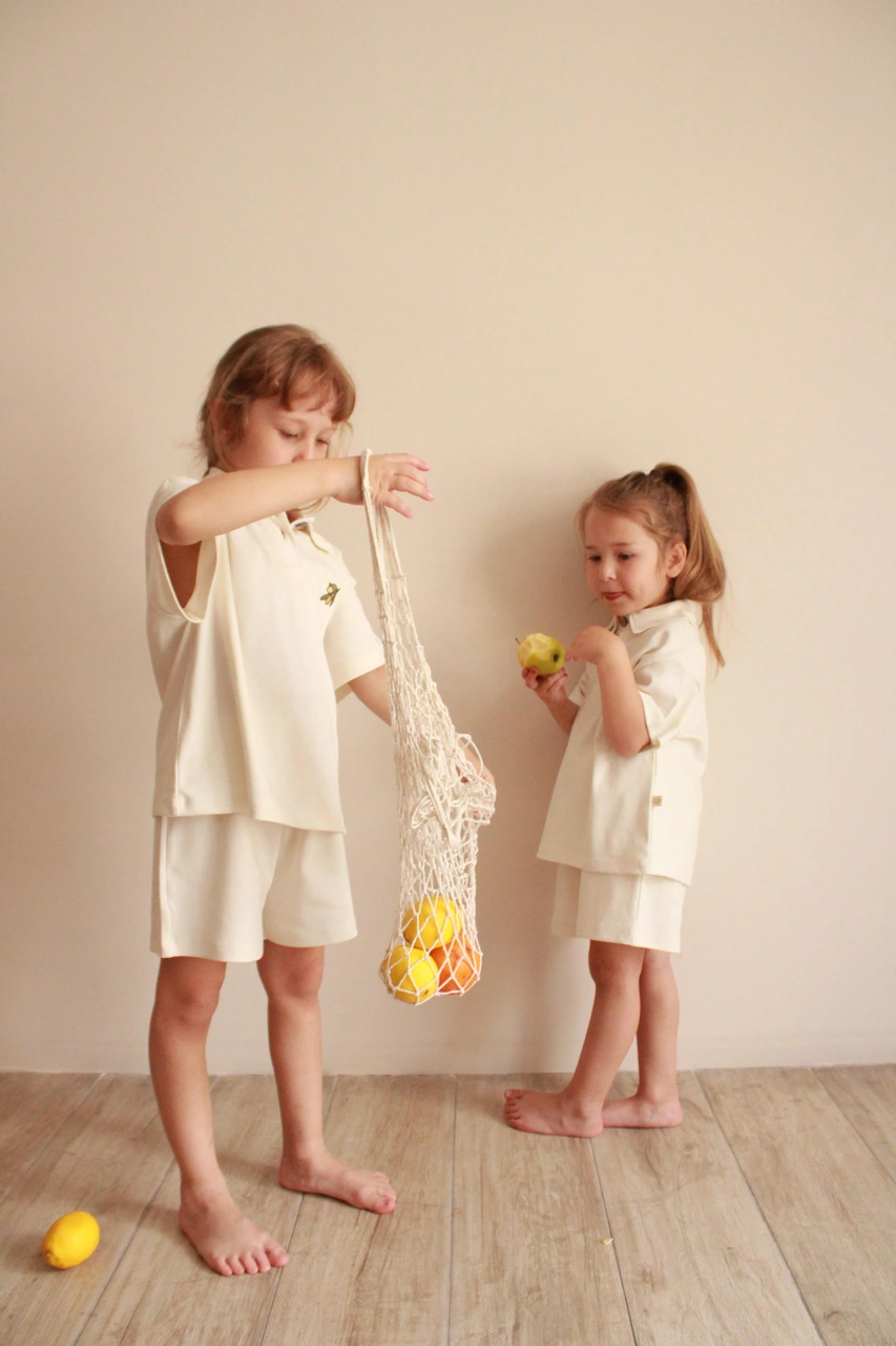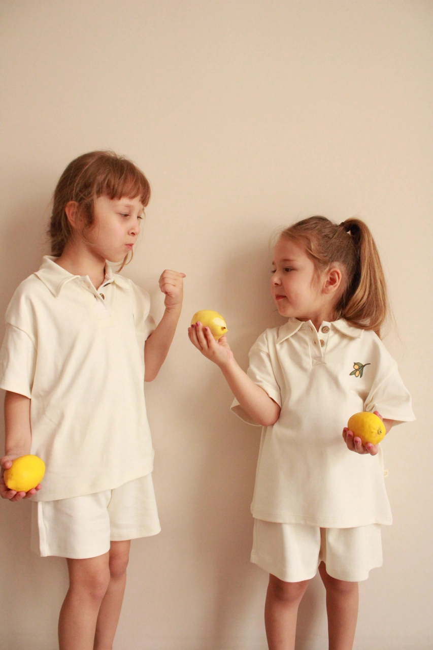 Zeytin Nakışlı Polo Yaka Şortlu Takım Ekru