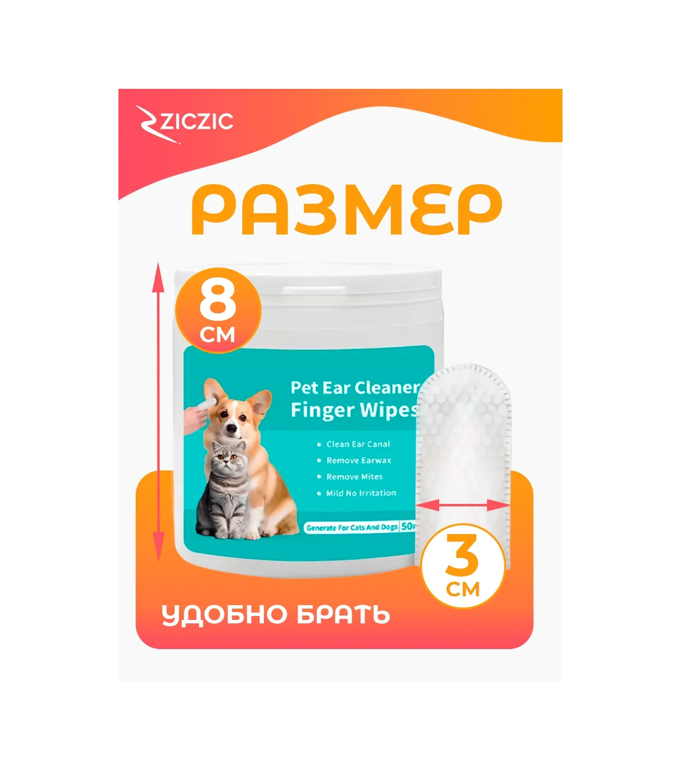 Ziczic Evcil Hayvanlar İçin Kulak Temizleme Islak Mendilleri, 50'li Evcil Hayvanlarınızın Kulak Hijyeni İçin Özel Olara
