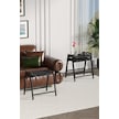 Zigon Sehpa , Aden 3'lü Tepsi Zigon Sehpa Takımı Siyah Metal - Siyah Mermer Tabla Siyah-siyah Mermer