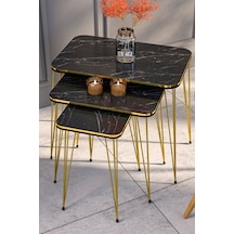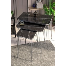 Zigon Sehpa Kr Çift Bendir Tel Siyah Ayak Siyah Mermer Desen