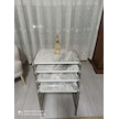 Zigon Sehpa Nikelaj Kaplama Metal Ayaklı Alaca Beyaz Mermer Dese