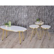 Zigon Sehpa Ve Orta Sehpa Elips Gold Metal Ayak Gold Beyaz Set