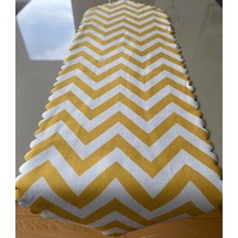 Zigzag Desenli 40x140 CM Lazer Kesim Runner 140 x 40 -Dikdörtgen-Sarı-Beyaz