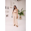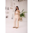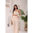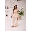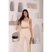 Zikzak Nakış Kalın Askılı Crop Bluz Pantolon 2li Takım Bej