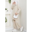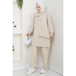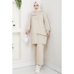 Tesettür İkili Takım Uzun Tunik Bol Paça Pantolon 4006-bej Bej