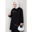 Tesettür İkili Takım Uzun Tunik Bol Paça Pantolon 4006-siyah Siyah