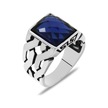Zincir Tasarım Faset Mavi Zirkon Taşlı 925 Ayar Gümüş Erkek Yüzük (457819339)
