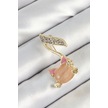 Mineli Turkuaz Ve Krem Balık Figürlü Gold Renk Kadın Broş