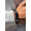 Zirkon Taşlı El İşçiliği İle Üretilmiş Hakiki Deri Erkek Bileklik Siyah