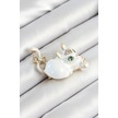 Zirkon Taşlı İnci Detaylı Beyaz 3d Kedi Figürlü Gold Renk Kadın Broş Çok Renkli