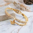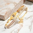 Zirkon Taşlı Kelebekli Çelik Kelepçe Bileklik - Vıp Serisi Gold Renk Lüks Takı Modası