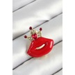 Zirkon Taşlı Kraliçe Taç Detaylı 3d Kırmızı Dudak Figürlü Gold Re Çok Renkli
