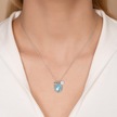 Zirkon Taşlı Pırlanta Montür Gümüş Rengi Kaplama Ortası Turkuaz Taşlı Desenli Oval Gümüş Kolye Gold - Rose Gold - Gümüş