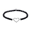 Zirkon Taşlı Pırlanta Montür Gümüş Rengi Kaplama Siyah Boncuklu Kalpli Strech Gümüş Bileklik Gümüş - Rose Gold