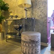Gazzini Furniture Diana Slim Line Luxury Havlu Kumaş Silindir Dekoratif Makyaj Masası Puf Beyaz
