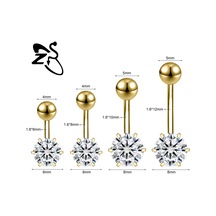 Zs 14g Paslanmaz Çelik Göbek Piercingi 6/8/10/12 Mm Cz Kristal Takı Greenşampanya Altın Şampanya Altın