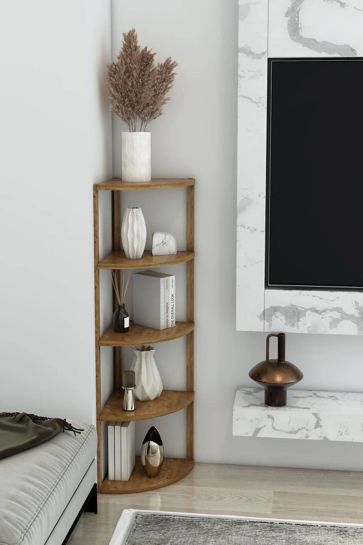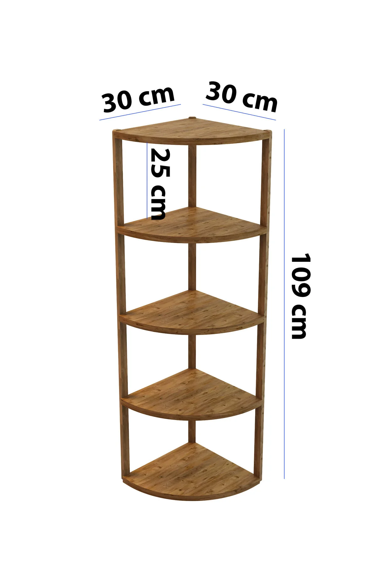 Zümrüt 5 Katlı Üçgen Ahşap Çok Amaçlı Sehpa / Saksılık-çiçeklik / Dekoratif Raf Atlantik Çam