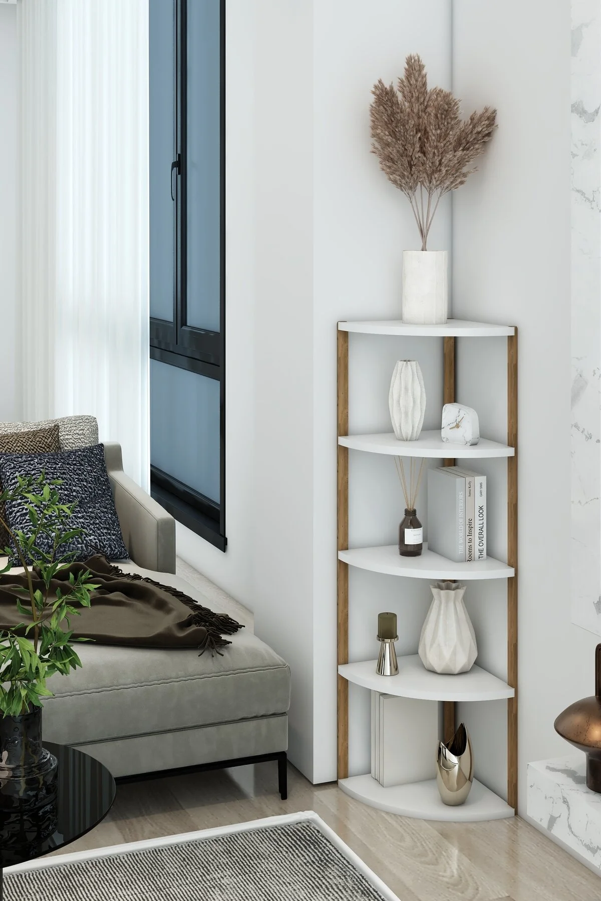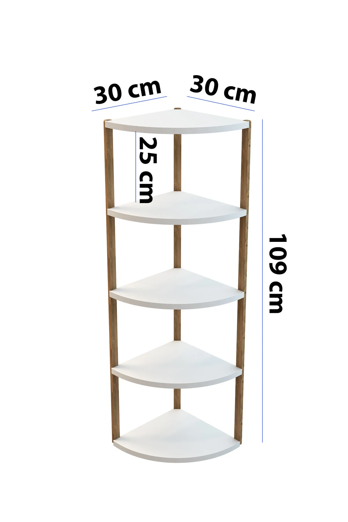 Zümrüt 5 Katlı Üçgen Ahşap Çok Amaçlı Sehpa / Saksılık-çiçeklik / Dekoratif Raf Beyaz