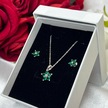 Zümrüt Yeşili Çiçeği Kadın 2'li Set 925 Ayar Gümüş Rodyumlu Zirkon Taşlı Gümüş